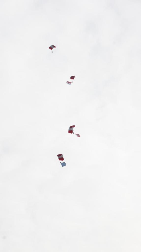 Das Warten auf irgendetwas von „oben“ hat sich dann doch noch gelohnt und der Sprung von fünf Fallschirmspringern konnte beobachtet werden.