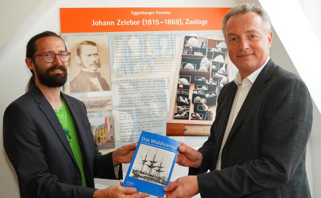 „Johann Zelebor ist wahrscheinlich nur wenigen bekannt“, so beginnt der Autor Gerhard Dafert seinen Aufsatz. Johann Evangelist Zelebor wurde am 5. Februar 1815 in Eggenburg im Haus Nr. 157 geboren. Im selben Haus wurde 33 Jahre später übrigens Johann Krahuletz geboren. Doch zurück zu Zelebor: er stammte aus einfachen Verhältnissen, eignete sich autodidaktisch naturkundliches Wissen an und betrieb in seinem zoologischen Wissenschaftsgebieten Pionierforschung. Er war schließlich einer von wenigen handverlesenen Naturforschern, die an der Novara-Expedition, einer Weltumseglung der österreichischen Marine in den Jahren von 1857 bis 1859, teilnehmen konnte.