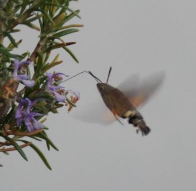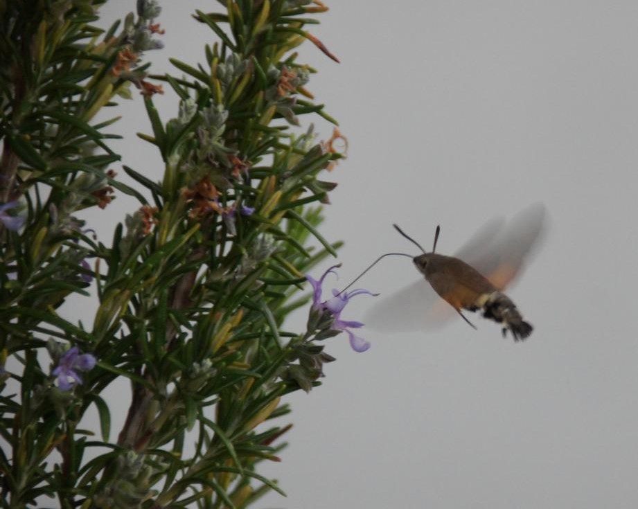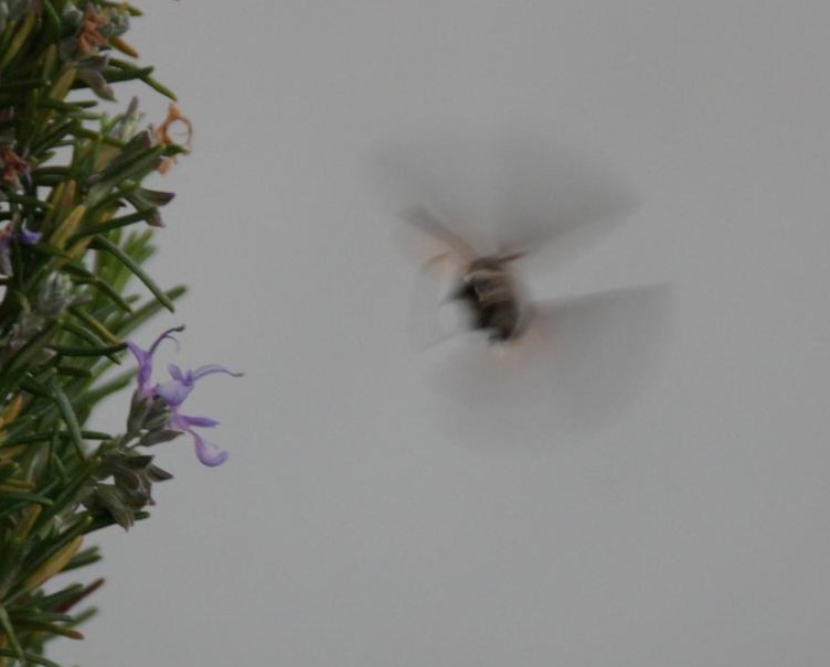 Zwischenzeitlich haben den herzköniglichen Tiergarten sowohl die Wanzen als auch die Spinne verlassen. Ein neuer Bewohner ist jedoch hinzugezogen und erfreut sich an den Rosmarinblüten.