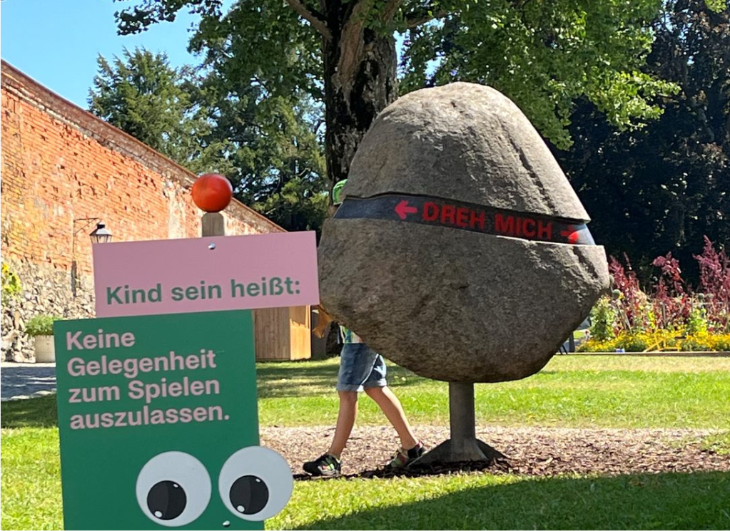 Bei den überall aufgestellten Schildern zum Thema „Kind sein heißt“ haben aber doch einige gefehlt, etwa: „Kind sein heißt: Fußballspielen verboten“, „Kind sein heißt: Spielen und Lärmen im Hof verboten“ oder „Kind sein heißt: Eltern haften für ihre Kinder“…