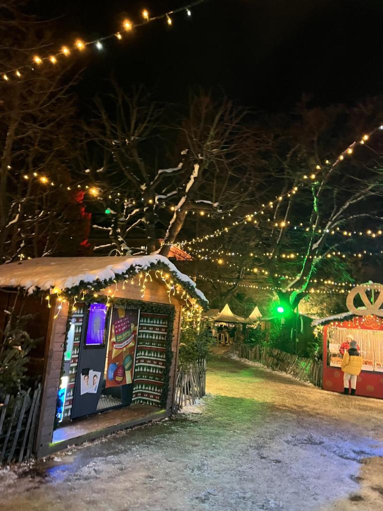 …schlenderte allein durch einen eingeschneiten Christkindlmarkt: