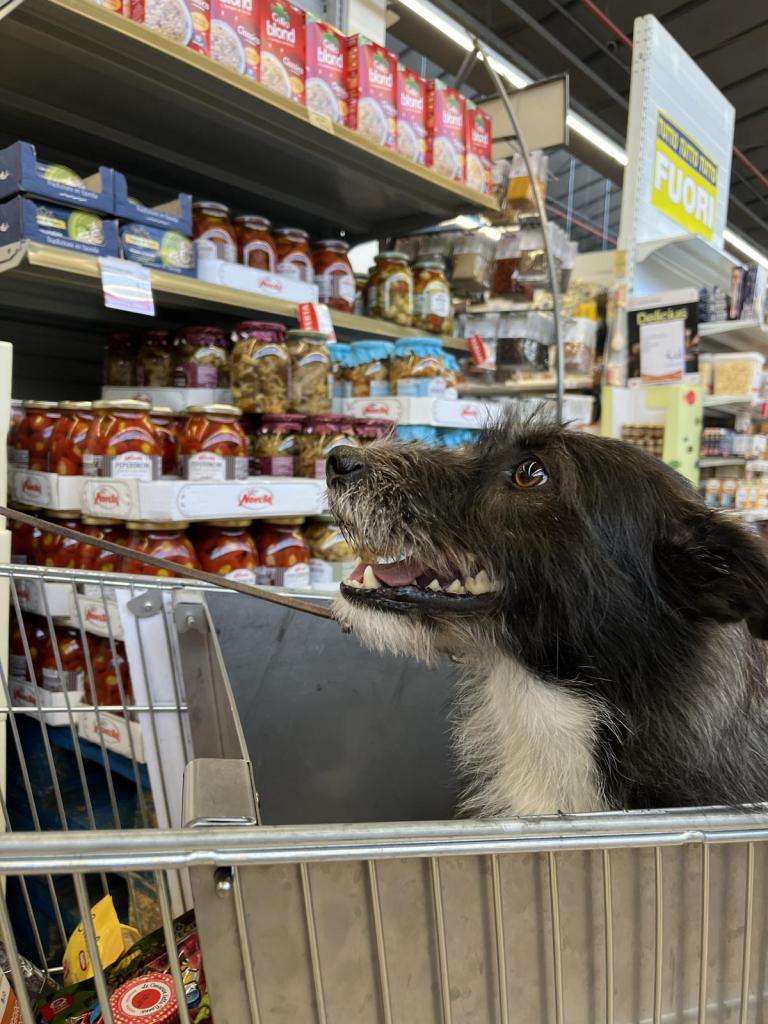 Und der Hund, der in Österreich eigentlich immer draußen zu warten hat, hatte sein erstes großes Einkaufserlebnis.