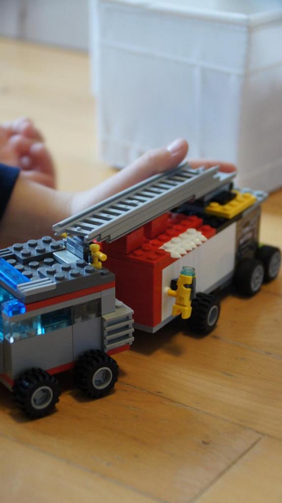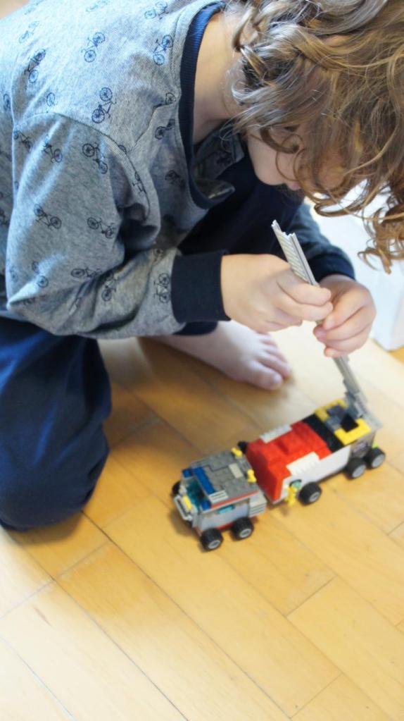 Der kleine Prinz hat sich in der Zwischenzeit selbst beschäftigt, er studiert ja auch schon im Nebenfach „Lego-Ingenieur“. Er konstruierte ein Feuerwehrfahrzeug.