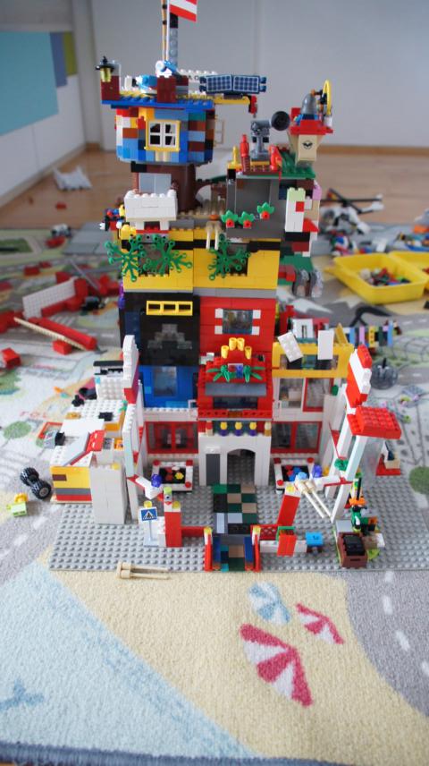 Während im Fernseher Lego-Masters lief, konnte der kleine Prinz nicht anders und musste auch zu Hause mitbauen. Entstanden ist ein Hotel. Obs auch einmal zu einer Fernsehteilnahme reicht?