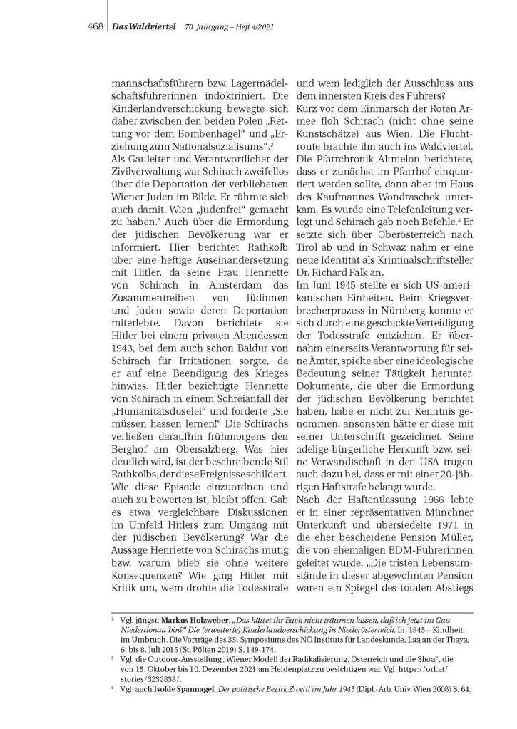 Der Bogen wird in diesem Heft von der Urgeschichte bis hin zur Zeitgeschichte gespannt. Hier geht Robert Streibel der Frage nach, wer den Marillenlikör in die Wachau gebracht hat. Bislang war dies mit dem Namen Bailoni verbunden, nunmehr auch mit dem Namen Oskar Wolter. Damit zusammenhängend kommen Themen wie Judenverfolgung, Enteignung und Arisierung zur Sprache. Das Heft „Das Waldviertel“ 2/2023 in einem Umfang von 128 Seiten kostet 8 Euro. Ein Bezug ist über die Website www.daswaldviertel.at möglich.